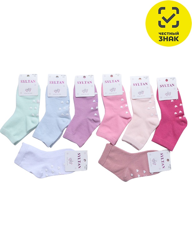 Носки детские, классический паголенок, двубортная резинка, однотонные, с тормозами (противоскользящим покрытием) на стопе.