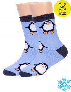 Плюшевые теплые детские носки с рисунком "пингвины".
