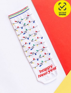 Носки детские с провязаным рисунком в новогодней тематике, двубортная резинка на паголенке. Цена указана за 1 пару, продажа осуществляется упаковками, 6 шт в упаковке.