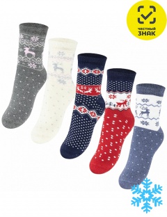 Детские носки, махровые внутри, с тематическим компьютерным рисунком "Лапландия". Двойной борт, кеттельный шов.