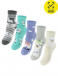 Носки для девочек, рисунок "Ламы", двойной борт, кеттельный шов.