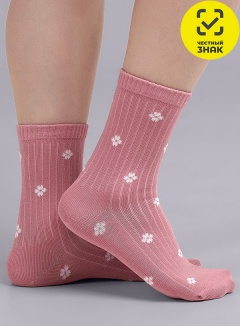 Нежные носки для девочки с паголенком средней длины, с рисунком в цветочек.