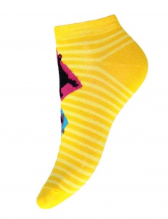 Носки детские укороченные в "полоску". Носок, пятка и резинка контрастного цвета, рисунок "кот на лежаке" на стопе.