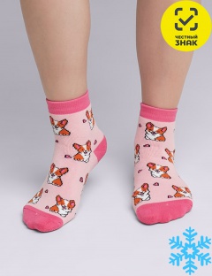 Махровые носки для девочки с рисунком собаки "КОРГИ".