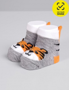 Ясельные носочки с рисунком тигра, хвост выполнен 3Д, упаковка на ножке-маникене.