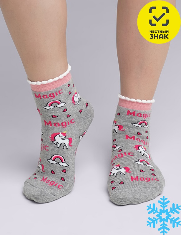 Плюшевые носки для девочки с набивкой единорожки.