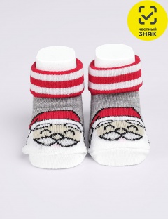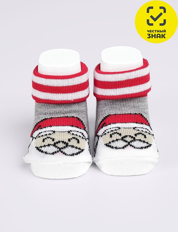 Новогодние носочки для новорожденного с Дедом Морозом, одеты на маникен-ножки.