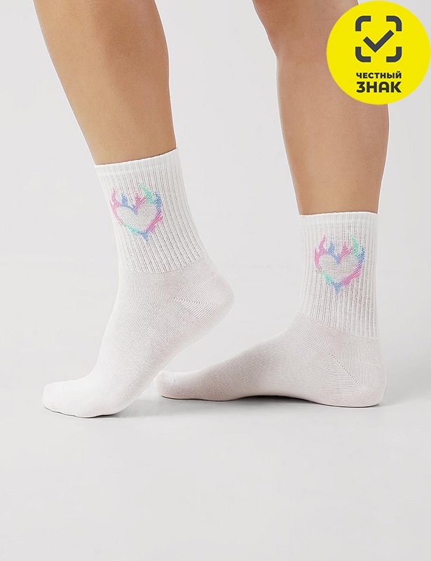 Подростковые носки для девочки с пылающим сердечком на паголенке — это стильный и милый аксессуар, который подчеркнёт индивидуальность вашей дочери. Они изготовлены из качественных материалов, обеспечивающих комфорт и долговечность носки.
