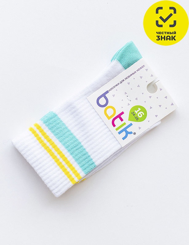 Производитель: ТМ batik Артикул: TL235 Носки детские (белый) Пол: унисекс Полотно: гладь с рисунком Состав: 80% хб, 15% па, 5% лк Возраст: детск