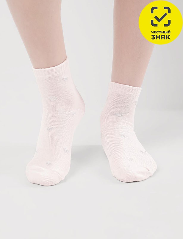 Нарядные носки для девочек с сердечками, украшенными люрексом. Изготовлены из высококачественного хлопка, мягкой и приятной к телу ткани.