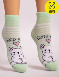 Носки batik детские трикотажные зеленые в полоску с рисунком в виде медвежонка и надписью. Приятные к телу носочки подойдут для повседневной носки. Носки с эластичной двубортной резинкой, мысок зашит кетельным швом.