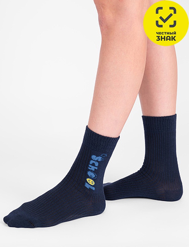 Подростковые носки с лаконичной надписью «SCHOOL» на паголенке. Модель связана из натурального гребенного хлопка, очень комфортная, мягкая и подходит для повседневной носки.