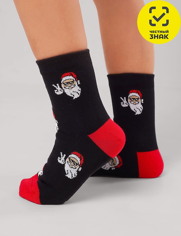 Носки детские для мальчика с выделенным мыском и пяткой с рисунком лица деда мороза