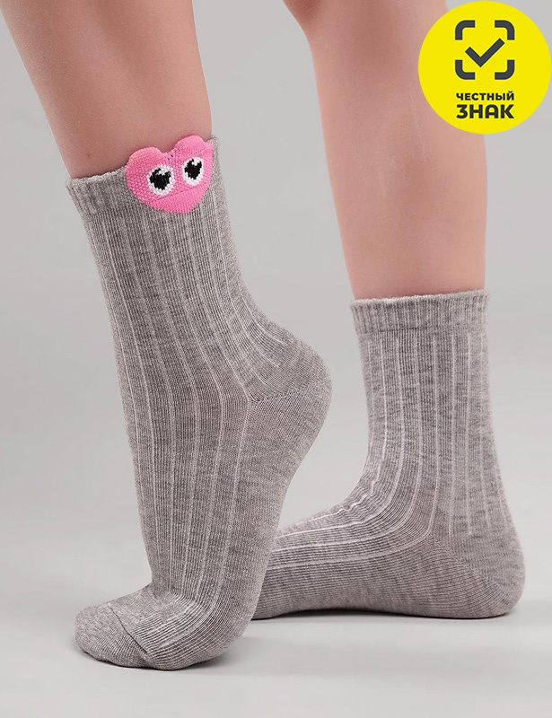 Носки для девочки однотонные с рисунком 3Д сердце с глазками.