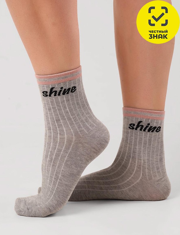 Носки для девочки с контрастными полосами на паголенке и надписью.