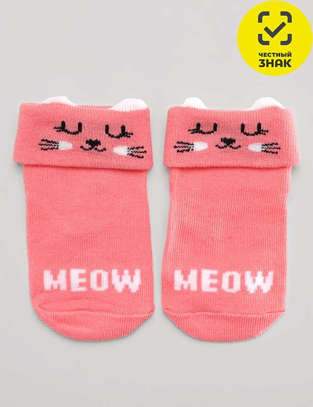 Ясельные носки с мордочкой животных и 3Д ушками, по следу нанесены силиконовые стоперы