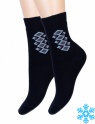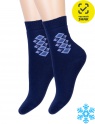 Универсальные детские носки с ромбиками на паголенке. Модель представлена в двух цветовых решениях. В первом — носочки синие, а ромбики голубые, во втором — носочки черные, а ромбики серые. Любой из этих вариантов абсолютно универсален в носке и подойдет ко многим образам.