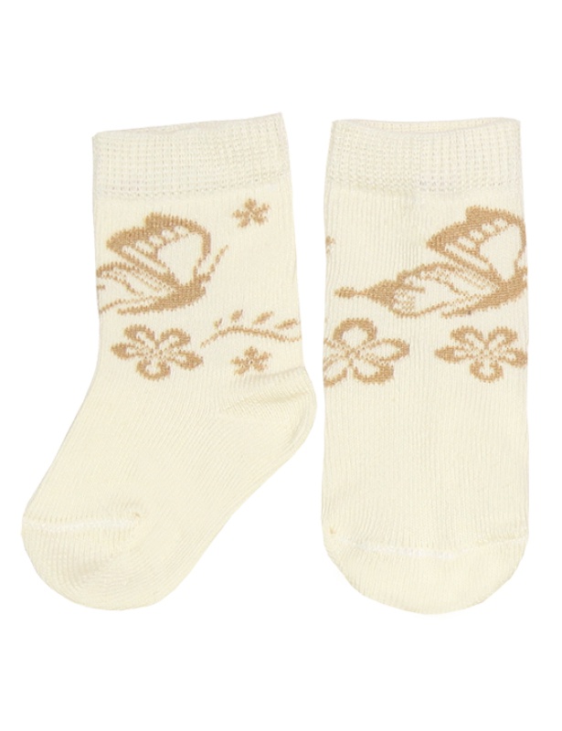 Носки для девочки, классический паголенок, дизайн «Бабочки на цветах».
