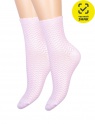 Носки детские с высоким паголенком, с провязанным ажурным геометричесим рисунком, однотонные, двубортная фигурная резинка на паголенке.