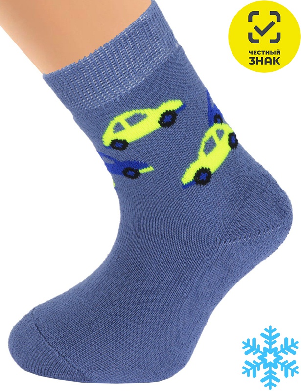 зимние теплые носки для мальчка (плюш внутри) с изображением машинок по паголенку.