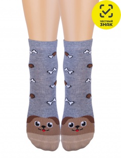 Носки детские с провязаным рисунком "собачка" на мыске и "косточки" по всей поверхности носка.