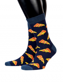 Мужские носки с пиццей, изображенной по всей длине изделия. Модель из натурального гребенного хлопка отличается комфортом, лёгкостью и устойчивостью к истиранию. Модные носки с оригинальным рисунком, несомненно, придутся по вкусу каждому гурману и привнесут в день яркие краски.