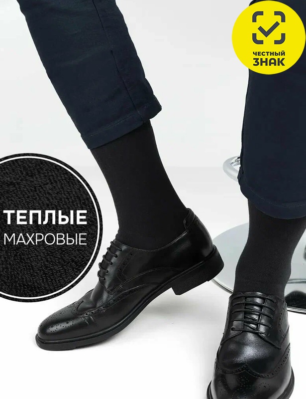 Зимние мужские носки с мелкой петельной структурой плюша, которая создает эффект микровелюра, что придает изделию приятное тактильное ощущение и не вызывает дискомфорта при использовании в обуви.