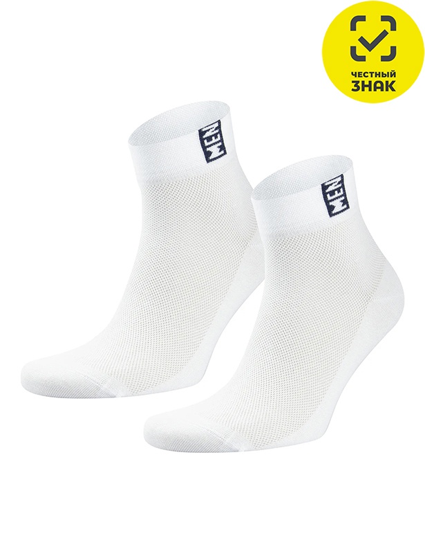 Укороченный носок с двойным бортом, переплетение «сетка», вышивка на боковой части борта "MEN", и ступне "RuSocks". Кеттельный шов.