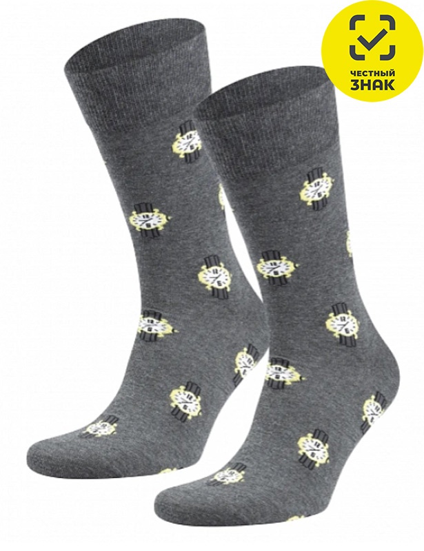 Яркие носки с двойным бортом и высоким паголенком. Стильный рисунок - "Часы".