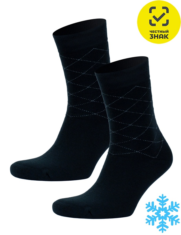 Зимние мужские носки, внутренняя махра, двойной борт. Рисунок "Ромбы". Кеттельный шов.
