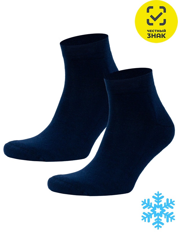 Укороченные мужские носки с внутренней махрой на нижней части следа, двойной борт, кеттельный шов.