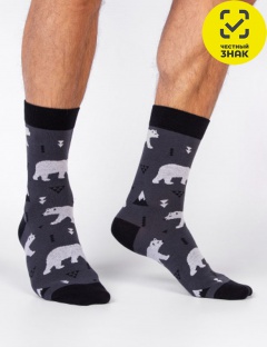 Модель демисезонных мужских носков с рисунком белых медведей. Изделие связано из натурального гребенного хлопка и подходит для повседневной носки. Модель станет отличным дополнением к подарку и поднимет настроение вашим близким.