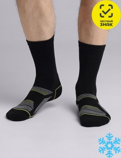 Мужские плюшевые теплые носки для активного отдыха с выделенными яркими элементами, резинка вывязана ластичным паголенком без утепления.