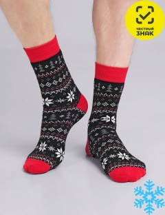 Мужские новогодние плюшевые носки со скандинавским орнаментом.