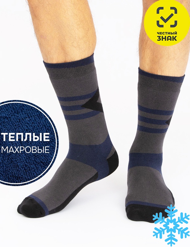 Производитель: Красная ветка Артикул: С695 Носки мужские (Синий) Пол: МУЖСКОЙ Полотно: плюш Состав: 88% хб, 9% па, 3% эл Возраст: взросл