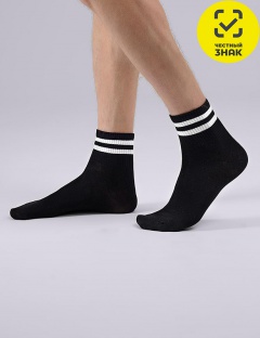 Мужские укороченные носки с декоративными полосками на паголенке. Особенность модели - кеттельный (плоский) шов, обеспечивающий комфорт при носке.