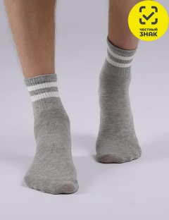 Мужские укороченные носки с декоративными полосками на паголенке. Особенность модели - кеттельный (плоский) шов, обеспечивающий комфорт при носке.