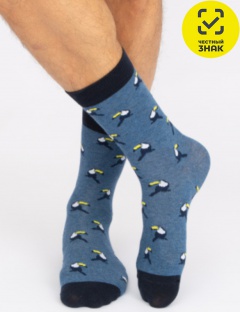 Стильные демисезонные мужские носки из хлопка. Последние тенденции в мире мужской моды добавляют яркость в повседневную жизнь и теперь мужские носки не только практичный и необходимый аксессуар, но еще и модный тренд. Оригинальный дизайн с туканами дополнен цветовым акцентом.