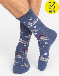 Мужские носки. Креативная модель связана из натурального гребенного хлопка, что гарантирует отличную воздухопроницаемость и гигроскопичность – находка для повседневной носки. Носки классической длины с новогодними рисунками станут креативным подарком для мужчин, ценящих стиль и оригинальность.