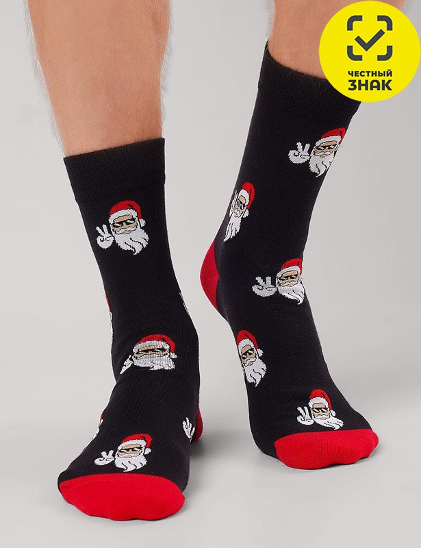 Носки мужские с выделенным мыском и пяткой , с рисунками лицо деда мороза