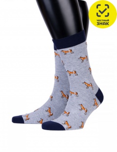 Носки мужские с провязанным рисунком "собачки", паголенок высокий. Двубортная резинка, пятка и мысок контрастного цвета.