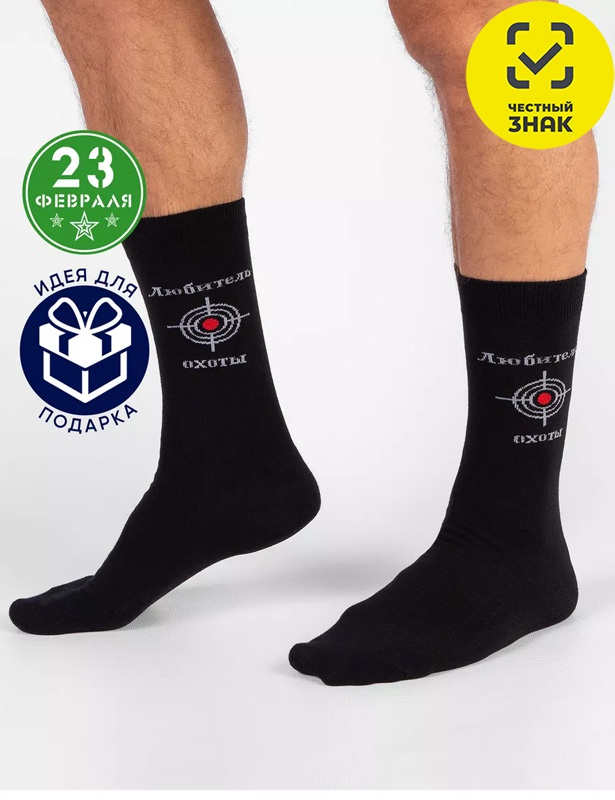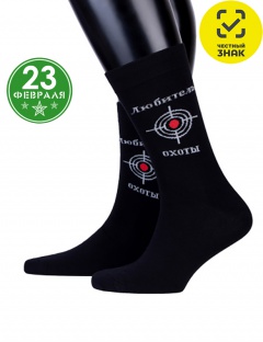 Однотонные мужские носки с вывязанной надписью "Любитель охоты". Повышенная плотность и двойная анатомическая резинка.