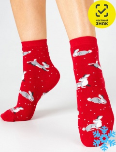 Плюшевые женские носки со средним паголенком, декорированы рисунком "символ года".