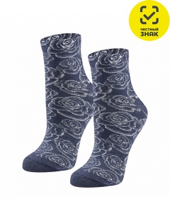 Носки из меланжевой пряжи с имитацией «ажура» рисунок - розы. Паголенок средней длины, кеттельный шов.