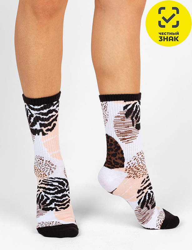 Женские носки. Модель связана из натурального гребенного хлопка и подходит для повседневной носки. Двубортная резинка мягко облегает ногу, не доставляя дискомфорт. Декорированы интересным принтом.