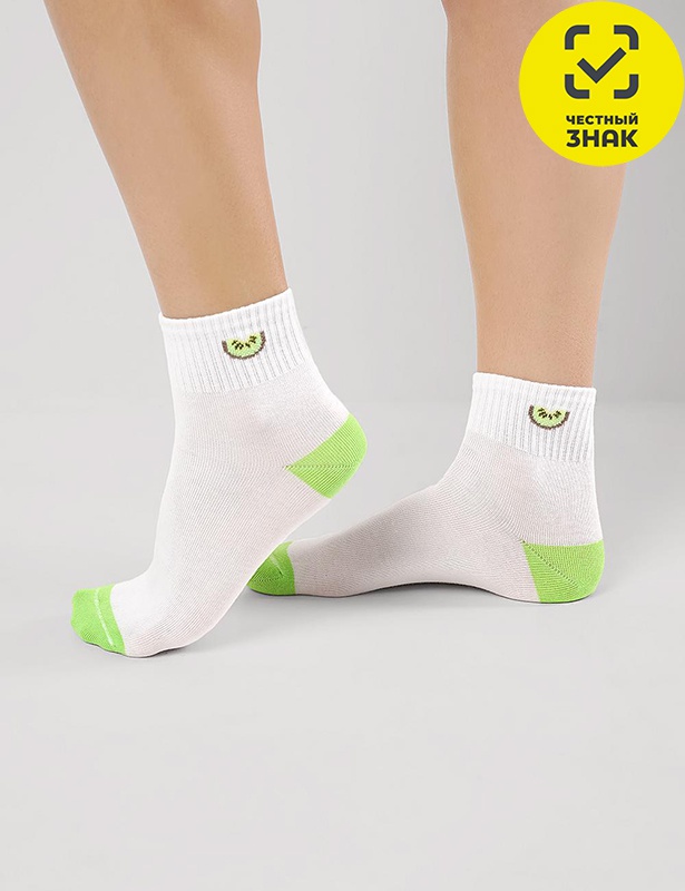 Производитель: ТМ Clever Артикул: CLE Носки женские Д5549 (белый, салатовый) Пол: ЖЕНСКИЙ Полотно: гладь с рисунком Состав: 70% хб, 25% па, 5% эл Возраст: взросл