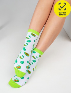 Носки женские с провязанным рисунком "Авокадо", паголенок средней высоты. Двубортная резинка, пятка и мысок контрастного цвета.