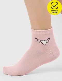 Укороченные женские носки, с мягкой двубортной резинкой пикот, на паголенке рисунок сердечко с крылышками.