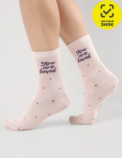 Женские носки в точку с надписью на паголенке