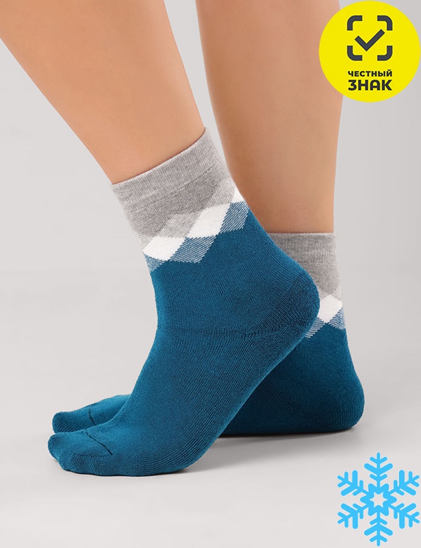 Женский плюшевый носок со стильными ромбами на паголенке.
